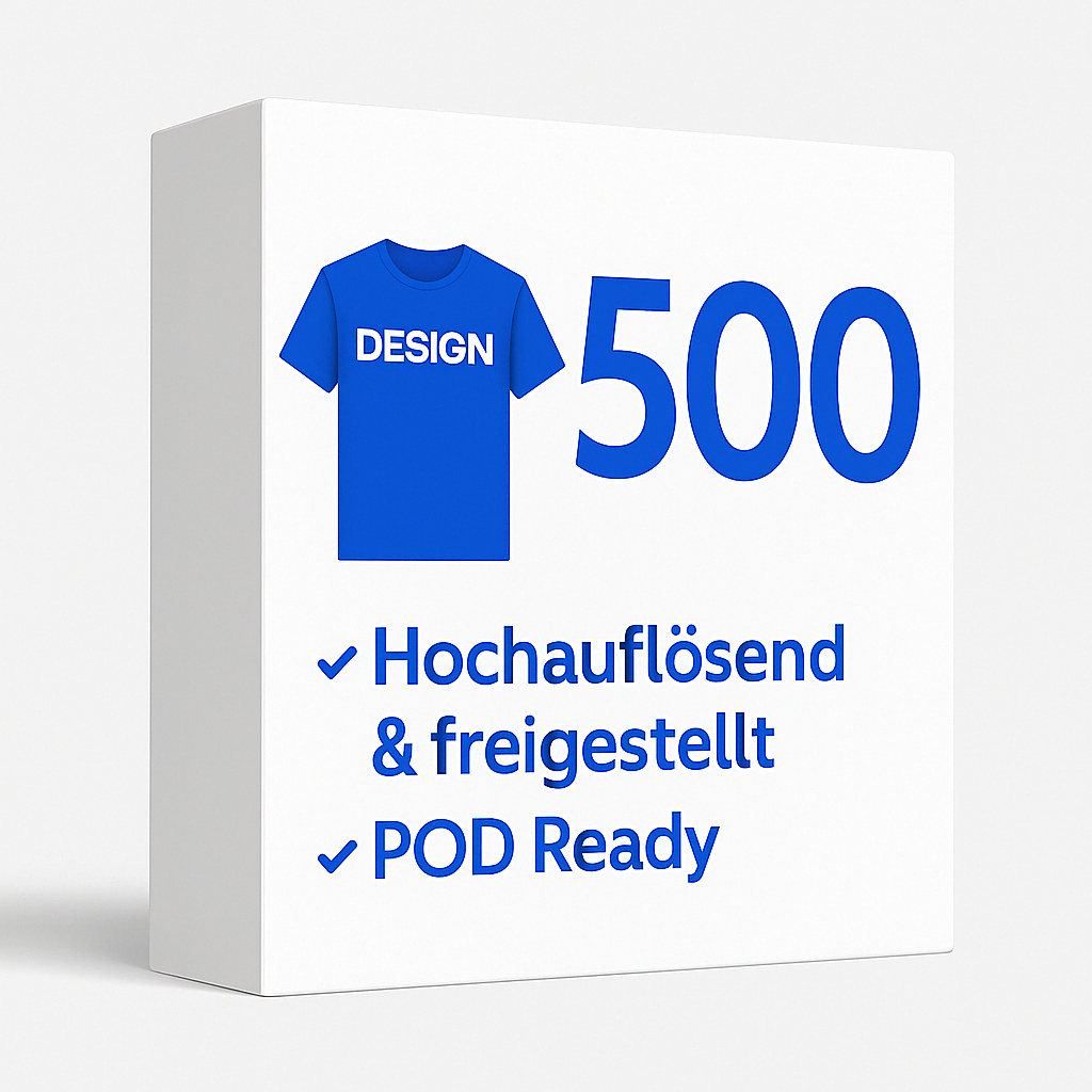 Du erhältst 500 fertig erstellte Ideogramm-Designs – hochauflösend, freigestellt, upscaliert und sofort einsatzbereit für Print-on-Demand, Etsy oder Social Media.